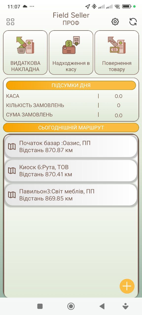 - Перелік торгових точок — із зазначенням клієнтів, адрес і днів відвідування